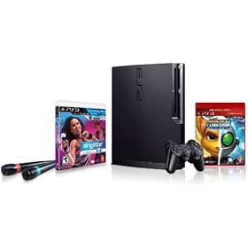 Editorial ReviewsThe PlayStation 3 160 GB Amazon-exclusive family bundle provides every member of the family with the unique blend of entertainment, excitement and fun that PlayStation 3 is famous for. The bundle consists of a PS3 loaded with a hefty 160 GB hard drive, a DualShock 3 controller, a copy of SingStar Dance, two wired SingStar microphones and a copy of Ratchet & Clank Future: A Crack in Time. SingStar Dance Party Pack is a multiplayer karaoke / dance dynamo supporting up to eight players online and four locally.¹ Ratchet & Clank Future: A Crack in Time is a single player platform shooter starring the famous pair of heroes in an all-new adventure in which you play as both characters, taking advantage of a wealth of new features, weapons and time-based abilities. Couple this with the advanced audio-video features of the PlayStation 3, which now includes disc-free access to Netflix, and you have the perfect means to enjoy the world of modern digital entertainment. PlayStation Move functionality, along with popular multiplayer and single player titles in a single, family-friendly console bundle. View larger. 160 GB of PS3 power paired with a DualShock 3 controller. View larger. 2 SingStar microphones to get you started with SingStar Dance. View larger. What's Under the HoodAs with previous models, the PlayStation 3 160 GB system features an IBM "Cell" processor and a co-developed NVIDIA graphics processor that together allow the system to perform two trillion calculations per second. Yet the 160 GB system manages to improve on this with its 45nm version of the processor, which although running at the same 60+nm speed as previous PS3 versions, uses less energy. This makes the unit's smaller size and quieter fan possible. Along with the traditional AV and composite connections, the 160 GB system also boasts an HDMI (High-Definition Multimedia Interface) port, which delivers uncompressed, unconverted digital picture and sound to compatible high-definition TVs and projectors. (The system is capable of 128-bit pixel precision and 1080p resolution for a full HD experience) This console also provides for an extreme sound experience by supporting Dolby Digital 5.1, DTS 5.1, as well as Linear PCM 7.1. Finally, it features cross connectivity with your PC network and PlayStation Portable (PSP) and its pre-installed, 160 GB hard disc drive allows you to save games as well as download content from the Internet. Blu-ray, PlayStation Network Downloads and BeyondPlayStation 3 utilizes the Blu-ray disc media format, which gives you the best high-definition viewing experience on your television, by way of the format's ability to hold six times as much data as traditional DVDs. This tremendous capacity, combined with the awesome power of the system's processor and graphics card, promises an endless stream of mind-blowing games and other multimedia content. This doesn't mean though that the PS3 is limited to Blu-ray discs. It also supports CD-ROM, CD-RW, DVD, DVD-ROM, DVD-R, DVD+R formats. In addition, PlayStation 3 system software includes BD Live support that allows you to play discs that support Blu-ray Disc Profile 2.0 (BD-LIVE), meaning you can also connect to the Internet while playing discs that support this format to obtain additional features. And of course PS3 owners also receive free access to the PlayStation Network (PSN), where through The PlayStation Store and PlayStation Home, they can download games, game demos, movies, and other content, as well as chat with friends, play mini-games, compete in tournaments and explore dedicated game spaces. A Sensational ControllerThe DualShock 3 wireless controller included with The PlayStation 3 160 GB system provides an intuitive gameplay experience, with pressure sensors in each action button and the inclusion of the highly sensitive Sixaxis motion sensing technology. Each hit, crash and explosion is more realistic when the user feels the rumble right in the palm of their hand. The DualShock 3 can even detect natural movements for real-time and high precision interactive play, acting as a natural extension of the user's body. DualShock 3 utilizes Bluetooth technology for wireless game play and the controller's detachable USB cable to seamlessly and automatically charge the controller when connected to the PlayStation 3. By integrating all of these features into the popular PlayStation controller design, the DualShock 3 further enhances the advanced gameplay experience only available on the PlayStation 3 system. Disc-free Netflix Video StreamingThe PlayStation 3 160 GB system is fully compatible with Netflix Instant streaming video functionality.³ Instant streaming video on the PS3 is now available without the need for an additional system disc from Netflix. The PS3 also supports some movies and TV shows in 1080p high definition with Dolby 5.1 channel surround sound. Synch with Your Other Sony HDMI DevicesThe PlayStation 3 160 GB system features HDMI + Bravia Synch functionality. Bravia Synch allows connectivity between Sony HDMI products, without having to utilize multiple remote controls. This means that with the push of one button users can control compliant Sony devices connected to your PS3 via HDMI cable. Console SpecificationsGames IncludedSupport up to eight players (online) in which you can now sing and dance. View larger. Get into the Groove with SingStar DanceSingStar Dance for PlayStation 3 is a unique extension of the SingStar music gaming experience that adds dance gameplay to the familiar karaoke-like performance action that the franchise is famous for. Dance activities utilize Sony's PlayStation Move motion controller and PlayStation Eye camera combination to replicate precisely choreographed routines on-screen, while singing gameplay uses standard USB microphones compatible with the PS3. Additional features include 4-player multiplayer that includes multiple dancers, 50 audio/video tracks, additional downloadable tracks, the ab